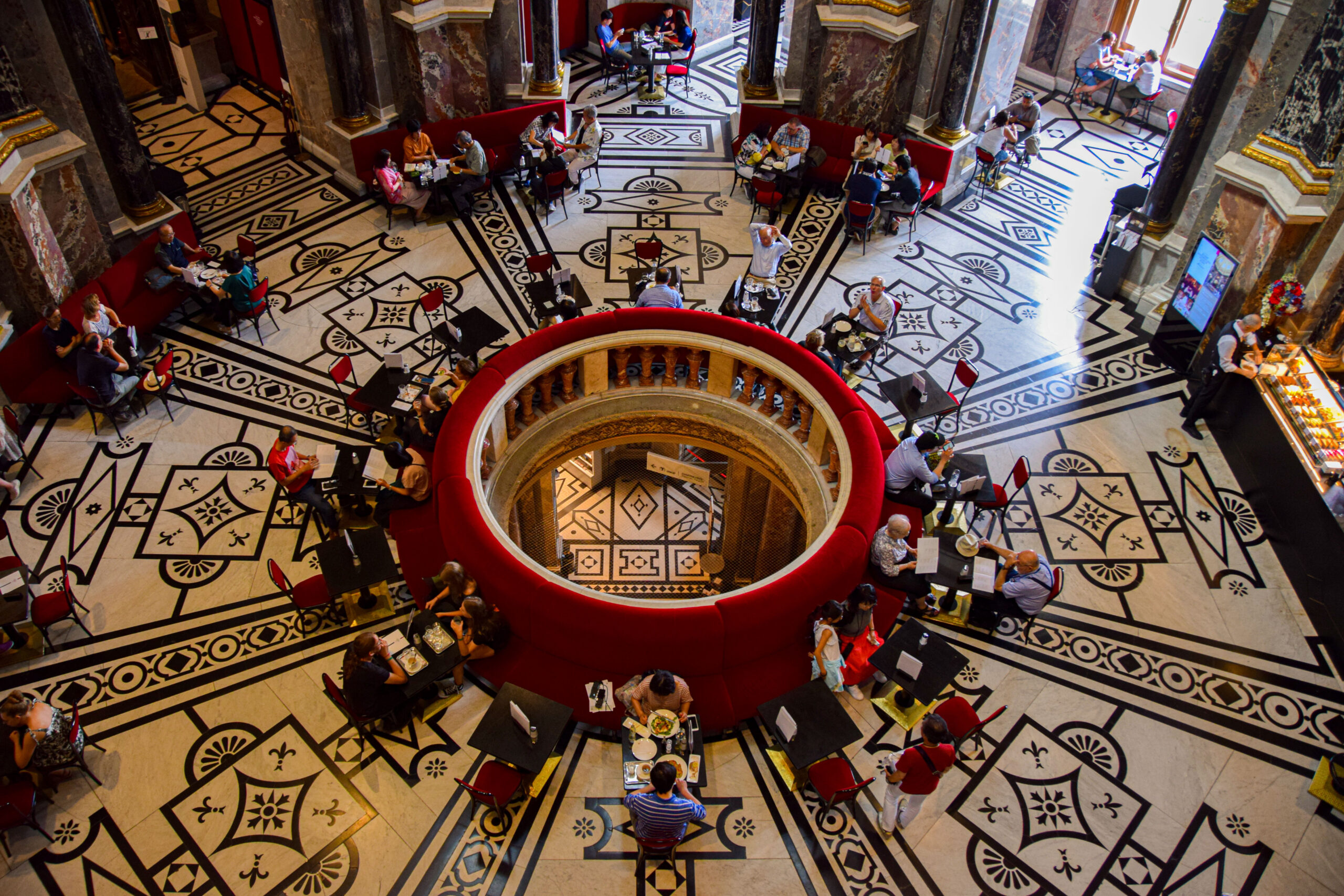 Le musée des Beaux-Arts dispose de son propre restaurant à l’esprit viennois entre sol en mosaïque de marbre et banquettes de velours rouge.