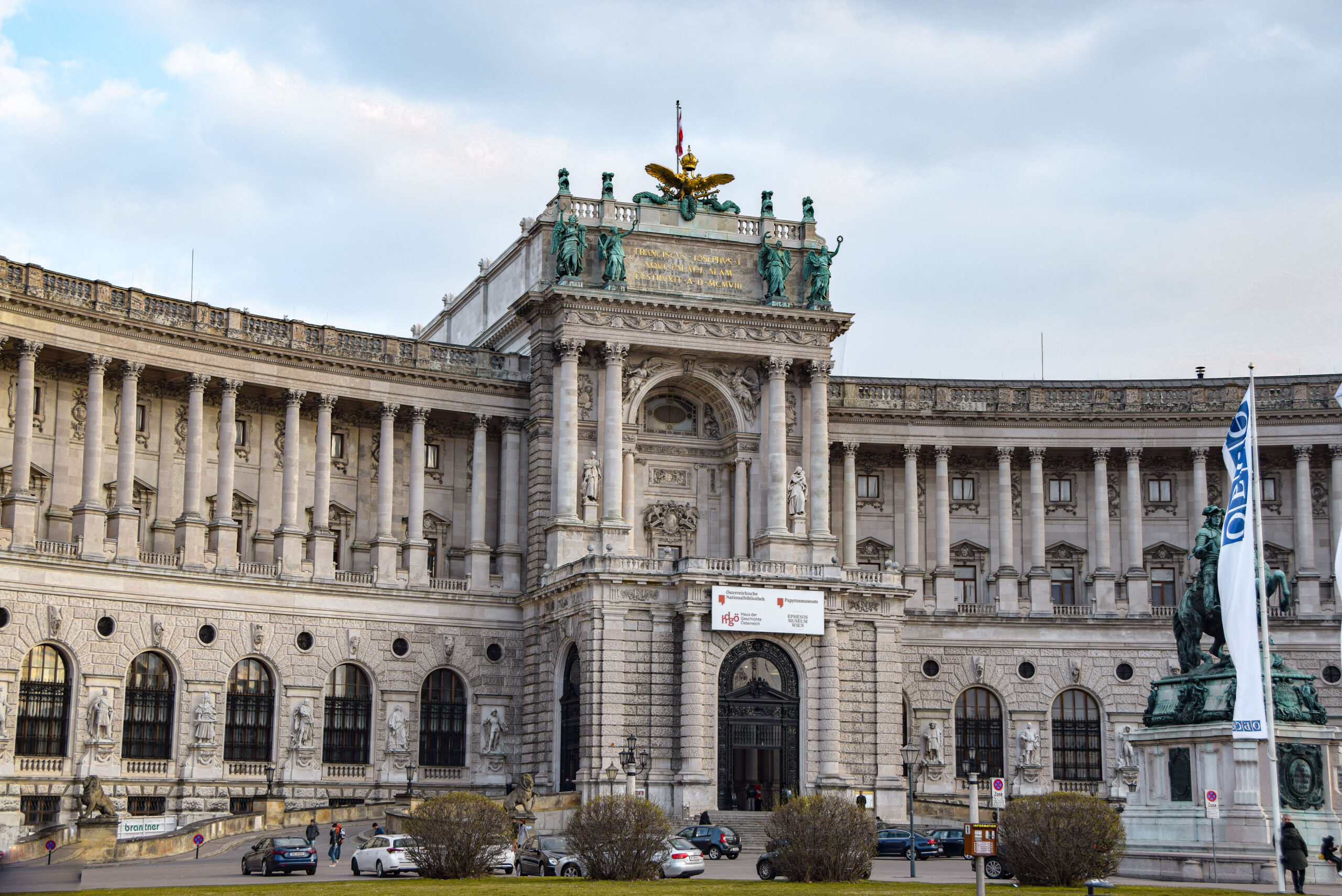 Pour terminer cette grande journée et ce week-end à Vienne, je décide de retourner dans le quartier du Hofburg pour explorer quelques lieux incontournables. En voulant rejoindre la Bibliothèque Nationale autrichienne, je traverse le Burggarten, ancien jardin du palais du Hofburg. Un lieu très agréable où trône les statues de Franz Joseph et de Mozart.