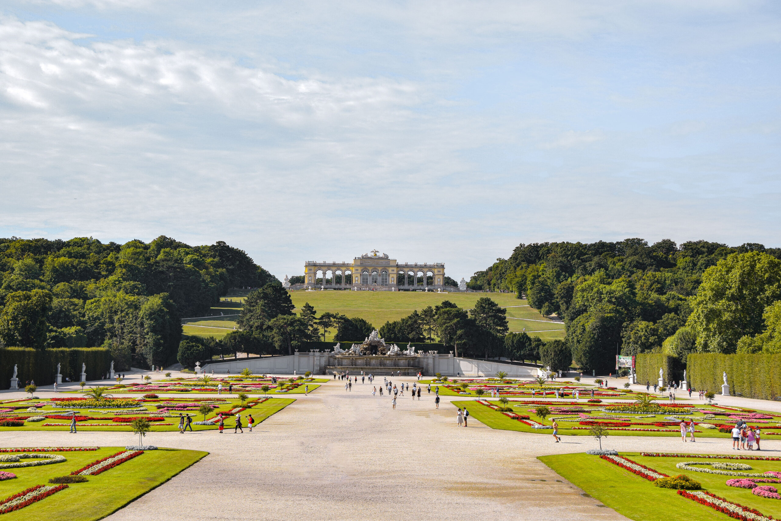Pour parfaire le tout, le parc du château est immense et possède entre autres, une orangerie, un zoo, une gloriette, un labyrinthe, des fontaines et de nombreuses allées pour d’agréables promenades. Du haut de la gloriette, vous aurez un superbe panorama sur le château et le reste de la ville en arrière-plan.