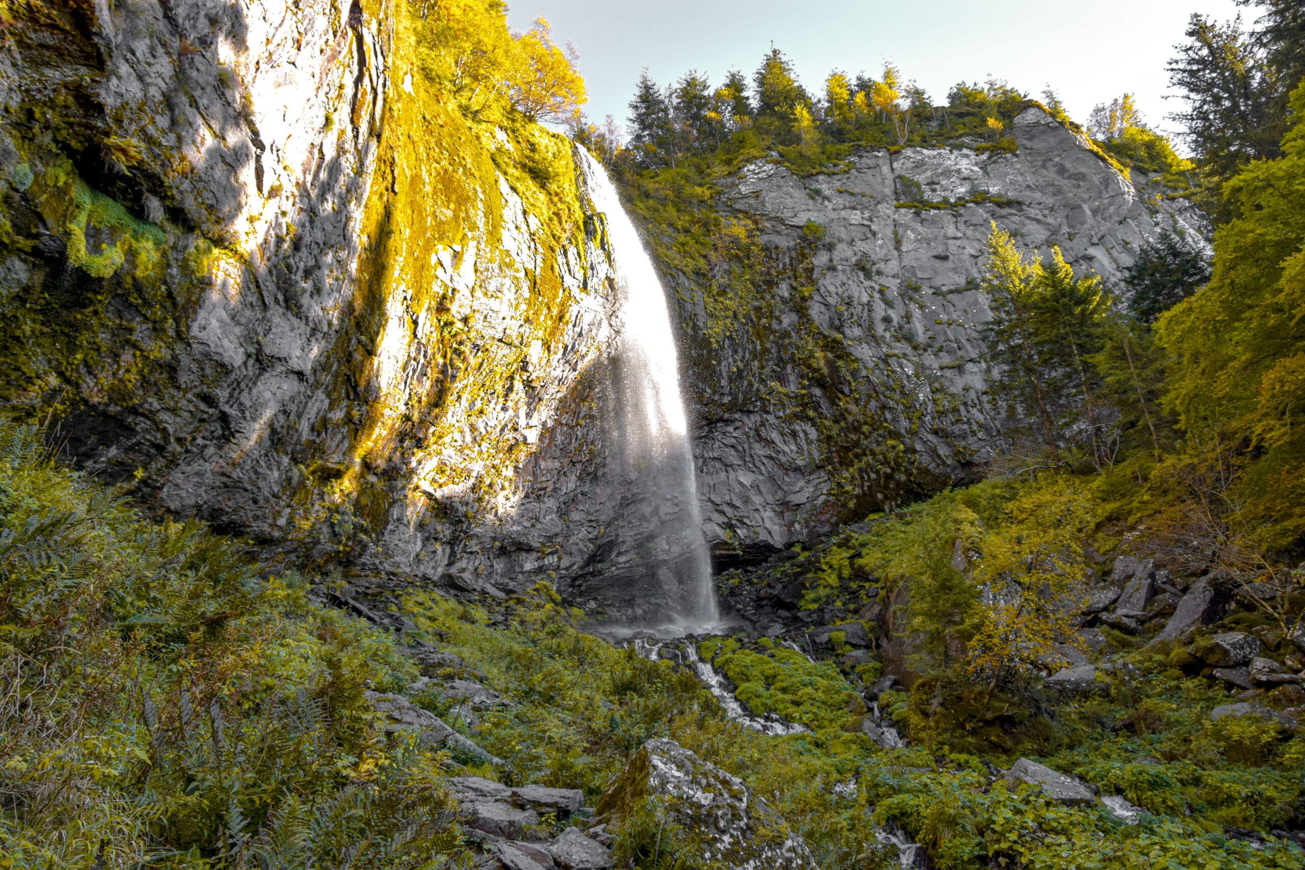 Après cette randonnée au Puy du Sancy, l’après-midi touchait peu à peu à sa fin mais il me restait encore un peu d’énergie pour une dernière marche. Je me suis donc rendue au Mont-Dore, bien connu pour sa station de ski mais aussi pour ses eaux thermales. Derrière les thermes, un sentier permet d’accéder à la Grande Cascade, la plus haute d’Auvergne (32 mètres). Le sentier débute par des escaliers situés au niveau du parking des Thermes (rue des Déportés) et des panneaux vont mèneront très simplement jusqu’à la cascade. Comptez environ 1h30 de marche tranquille aller/retour avec un dénivelé de 225 mètres.