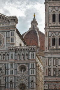 Nous poursuivons notre découverte de Sienne avec le complexe de la cathédrale, comprenant notamment le Duomo, chef-d’œuvre de l’architecture gothique italienne. La façade, ornée de marbre blanc, vert et rose, est fourni de détails sculpturaux et de mosaïques dorées. À l’intérieur, le sol est décoré de marqueteries en marbre et les murs ornés de représentations bibliques. Nous visitons également la bibliothèque Piccolomini dont les fresques peintes par Pinturicchio sont une explosion de couleurs. À côté, le Baptistère abrite une magnifique coupole en bronze, réalisée par des maîtres tels que Donatello et Ghiberti. Bien plus qu’un ensemble religieux, le complexe de la cathédrale de Sienne incarne toute la ferveur spirituelle et sa rivalité artistique avec Florence.