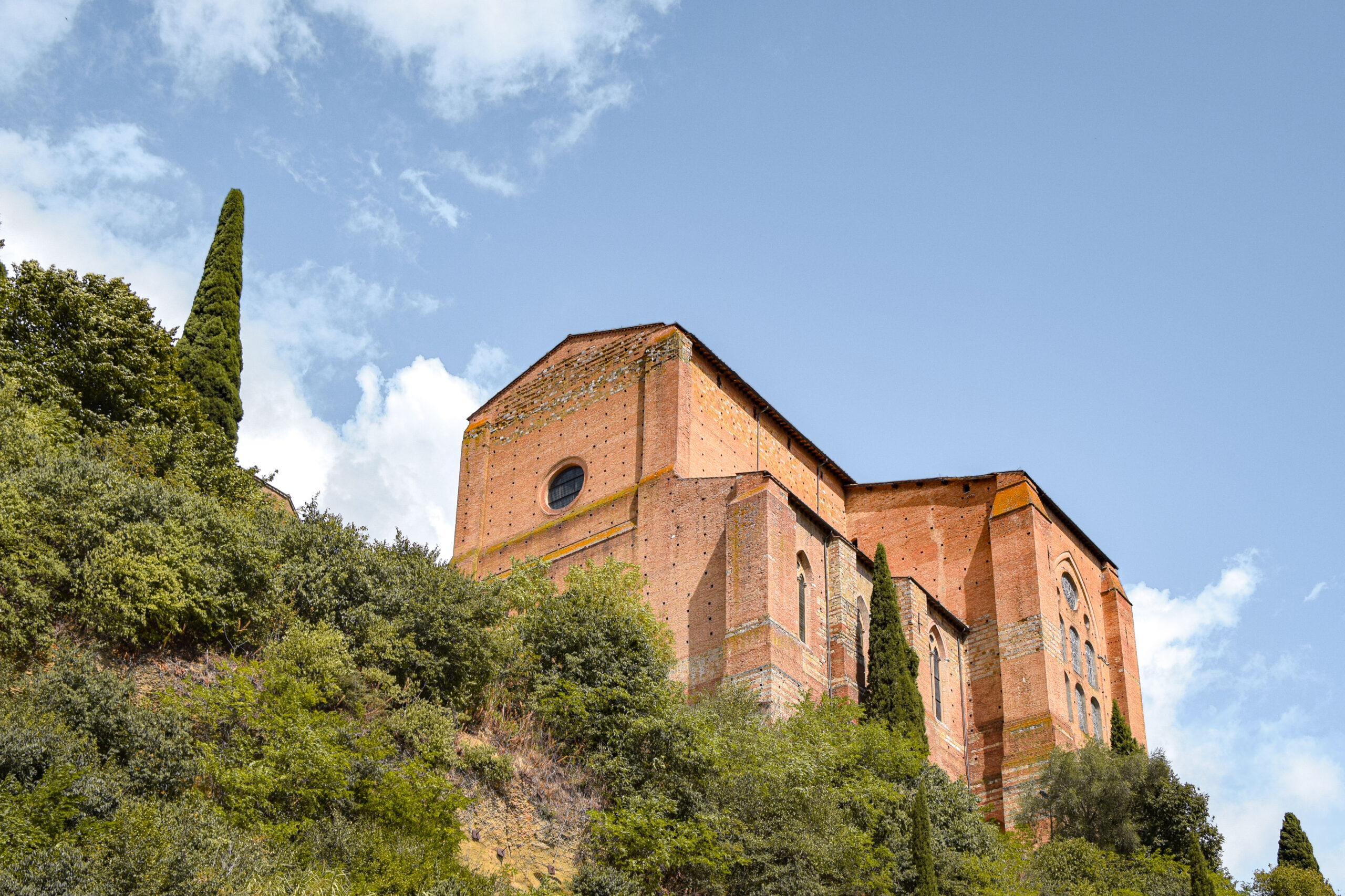 Autre bâtiment religieux incontournable, la basilique San Domenico est un édifice de style gothique et un des lieux les plus spirituels de Sienne. Fondée au 13ème siècle par les dominicains, elle abrite des reliques de Sainte-Catherine de Sienne, sainte patronne d’Italie et figure influente de la chrétienté. À l’intérieur, la chapelle de Sainte Catherine renferme sa tête et son pouce, préservés comme des reliques sacrées, et des fresques dépeignent sa vie et ses visions mystiques. L’église est assez sobre d’extérieur comme à l’intérieur mais attire pourtant chaque année de nombreux pèlerins et visiteurs.