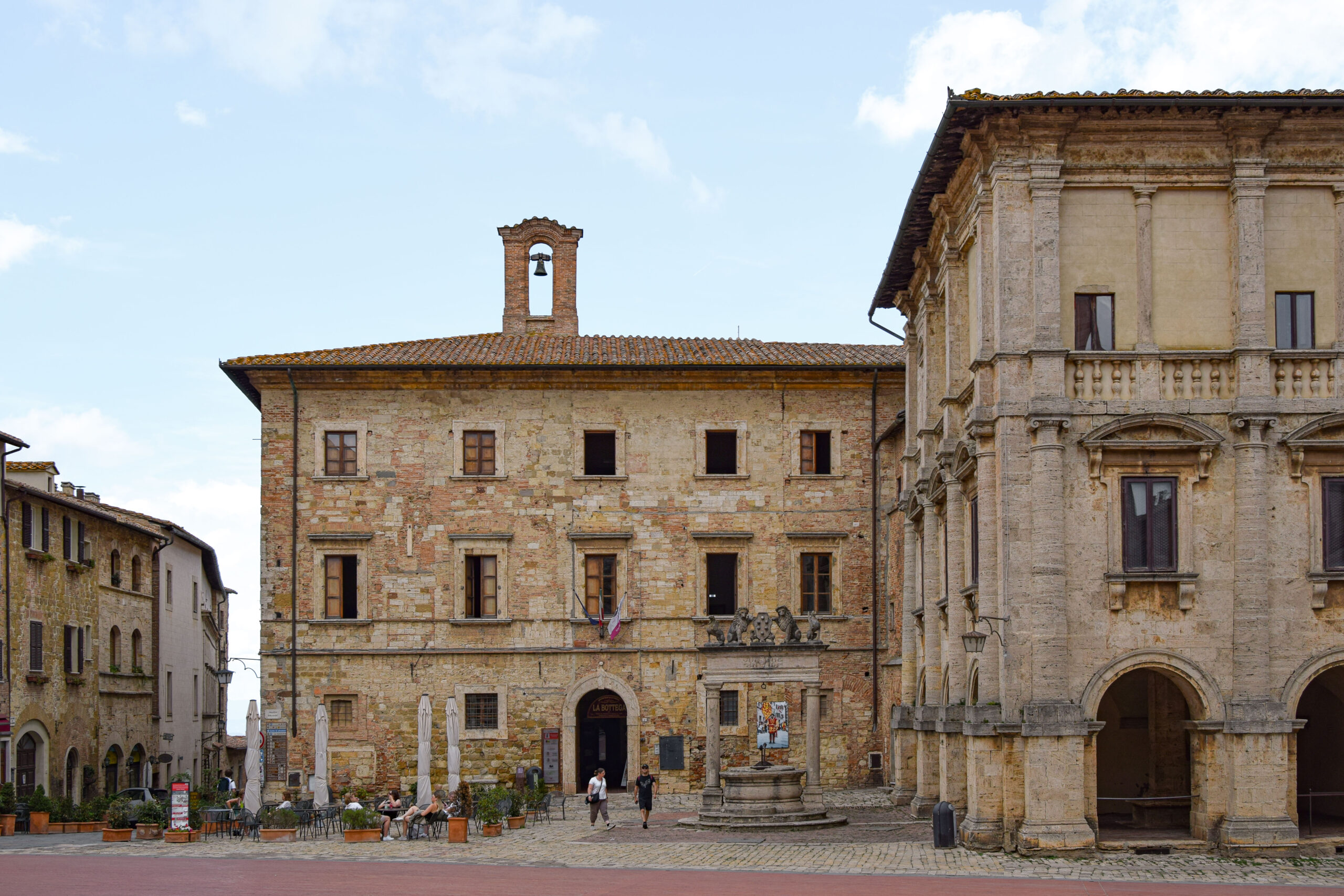 Après 15 minutes de route, nous atteignons la cité médiévale de Montalcino, mondialement connue pour son vin, le Brunello di Montalcino. Perché sur une colline, le village offre une vue panoramique sur les vignobles et les oliveraies environnants. Le centre de Montalcino est dominé par la forteresse du 14ème siècle, un bastion accueillant de nombreuses festivités chaque année. Dans le cœur historique, les ruelles étroites et pavées sont bordées de petites boutiques de vins et de produits artisanaux locaux. Ce village est une halte idéale pour découvrir et déguster les meilleurs vins de Toscane. D’un point de vue architectural et culturel, le village de Montalcino manquait d’intérêt à nos yeux.