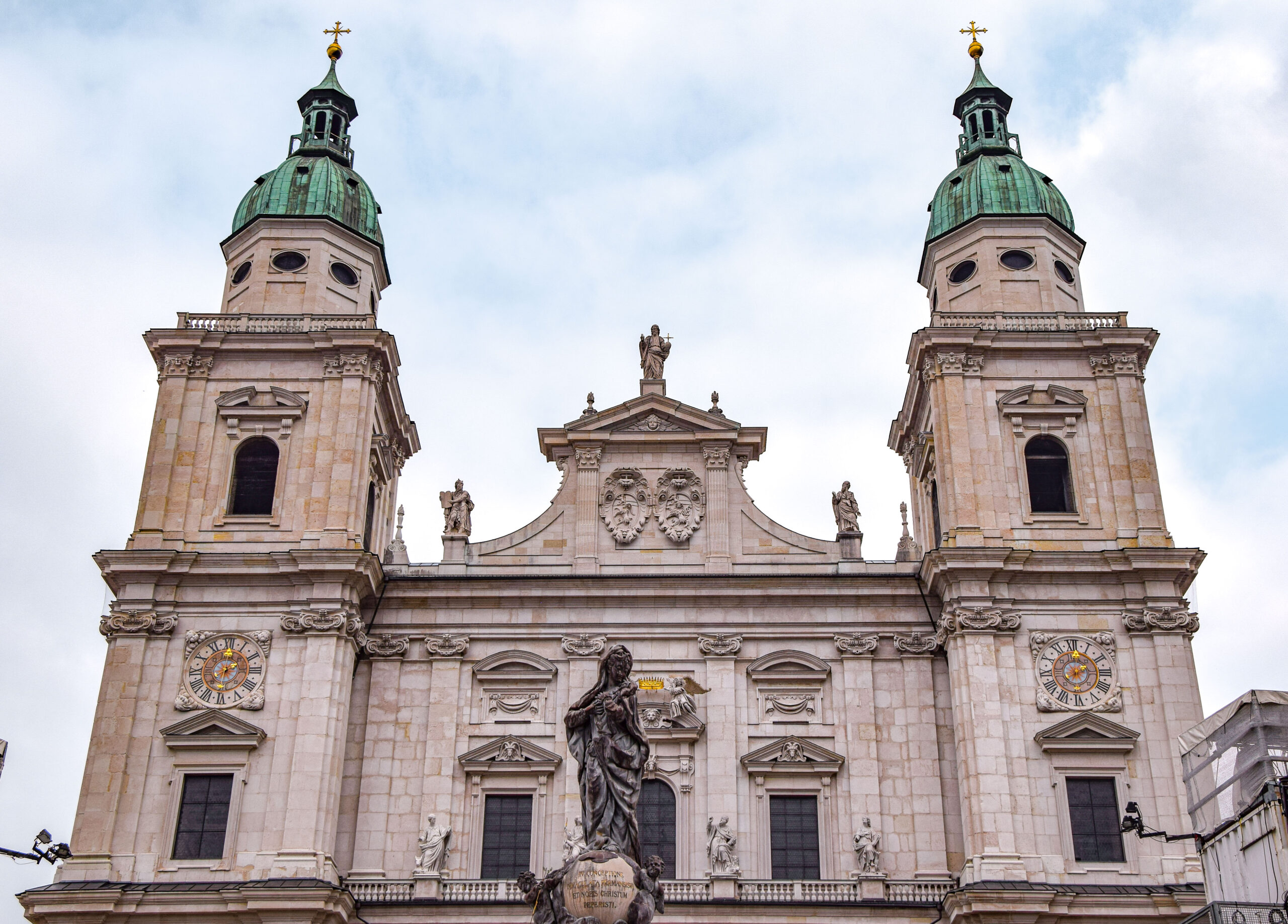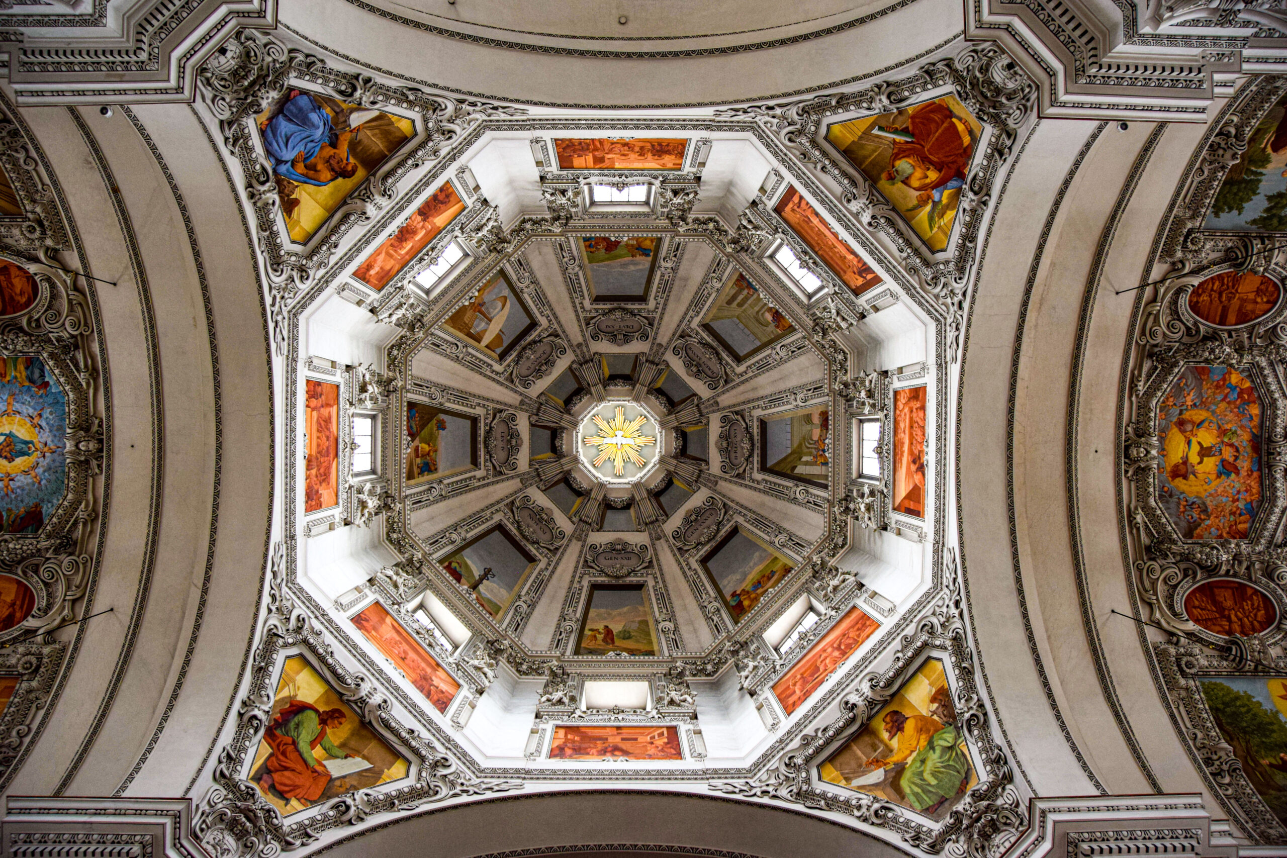 J’explore par la suite les ruelles du centre-ville de Salzbourg et les monuments emblématiques qui le composent. Pour commencer, je prends la direction de la cathédrale Saint-Rupert de Salzbourg et du DomQuartier. La cathédrale de Salzbourg, appelée en allemand “Dom”, est une merveille d’architecture. Sa façade principale, ses nefs et ses coupoles intérieurs baroques mais aussi ses plafonds sculptés et les fresques qui les décorent sont somptueux. La cathédrale renferme également les reliques de Saint-Rupert, premier archevêque de Salzbourg.