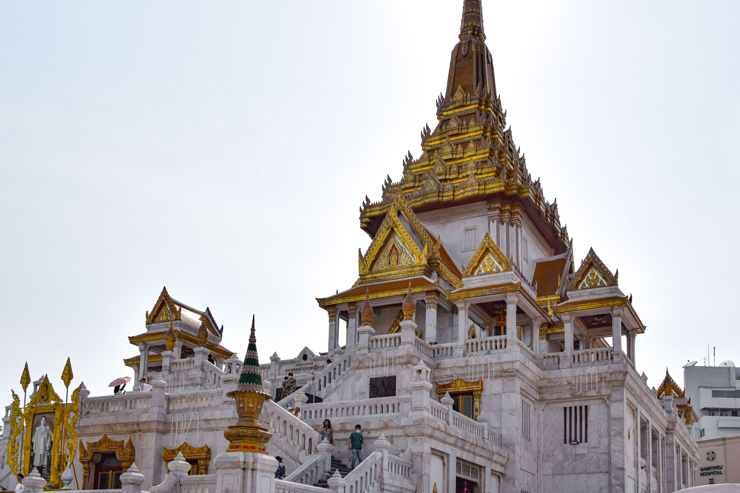 A proximité de la porte d’entrée de Chinatown, se cache le Wat Traimit connu pour renfermer un bouddha en or massif de 3 mètres de haut. Ce bouddha remonte à l’époque Sukhothai comme en témoignent la forme de sa tête et les larges lobes d’oreille. A partir du 18ème siècle, la statue de ce bouddha était recouverte d’un enduit en stuc empêchant d’attirer la convoitise des pilleurs. Toutefois, ce n’est que dans les années 1950 que sa robe dorée s’est révélée au grand jour lorsque le plâtre de stuc se brisa au moment de la déplacer. Le bouddha trône aujourd’hui au centre de la salle de prière et attire de nombreux visiteurs chaque jour. L’architecture extérieure du temple est tout aussi remarquable.