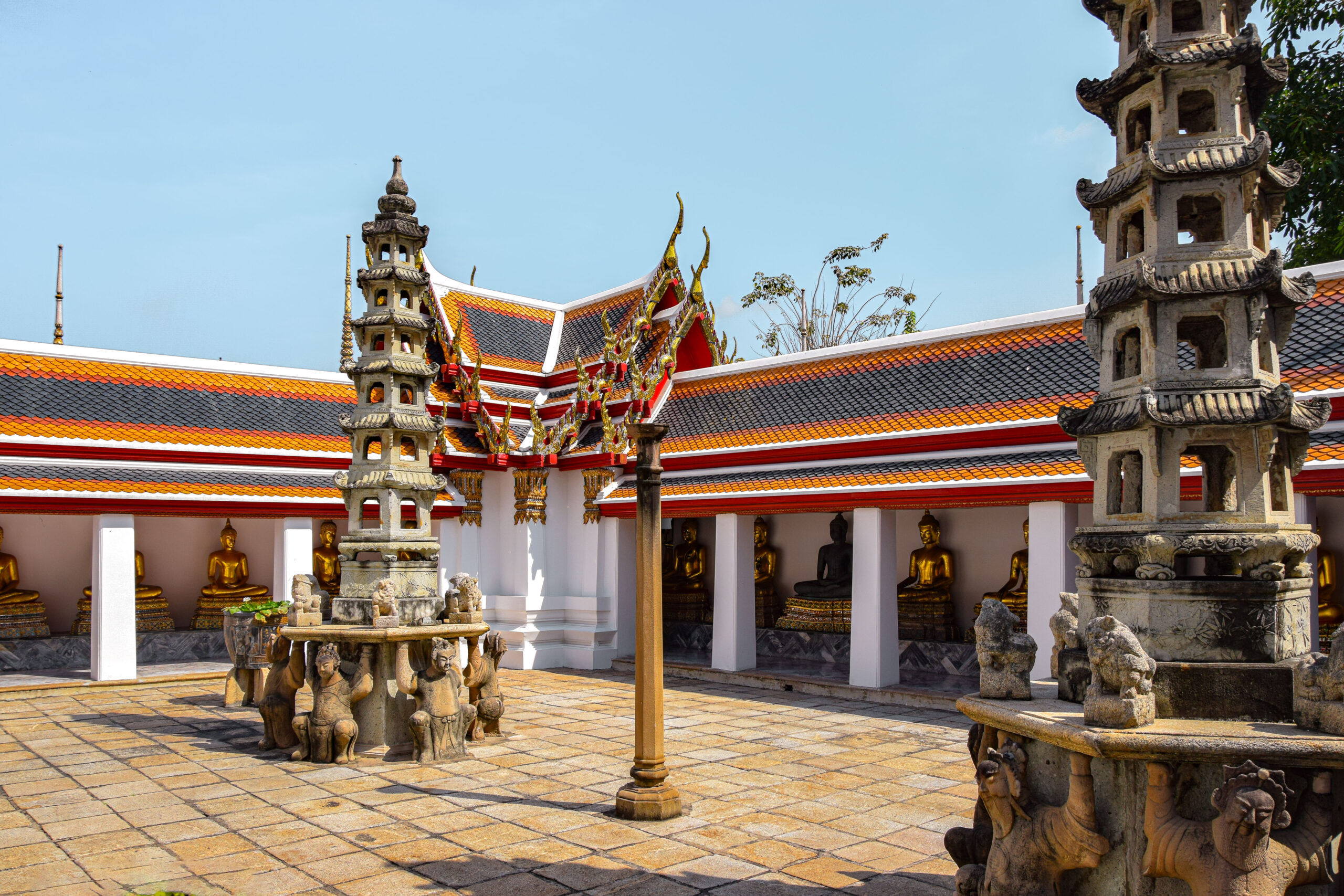 Le complexe du Wat Pho comprend aussi de nombreux chedis royaux construits selon les codes de l’architecture Ratanakosin ainsi que d’autres pavillons qui accueillent notamment l’école du massage thaï.