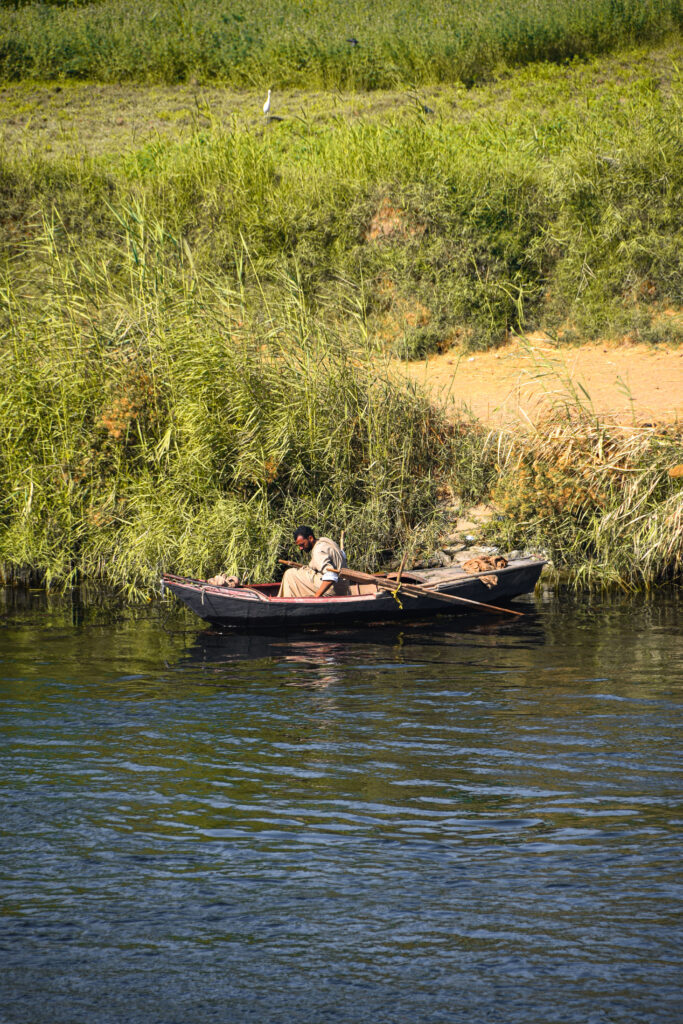 C’est à Louxor que débute notre croisière sur le Nil, ce ruban bleu qui sculpte le pays. Les premières heures de navigation révèlent un paysage doux : rives vertes, paysans dans les champs, enfants qui jouent au bord de l’eau. Le Nil n’est pas qu’un décor, c’est une vraie respiration, un lieu de vie.