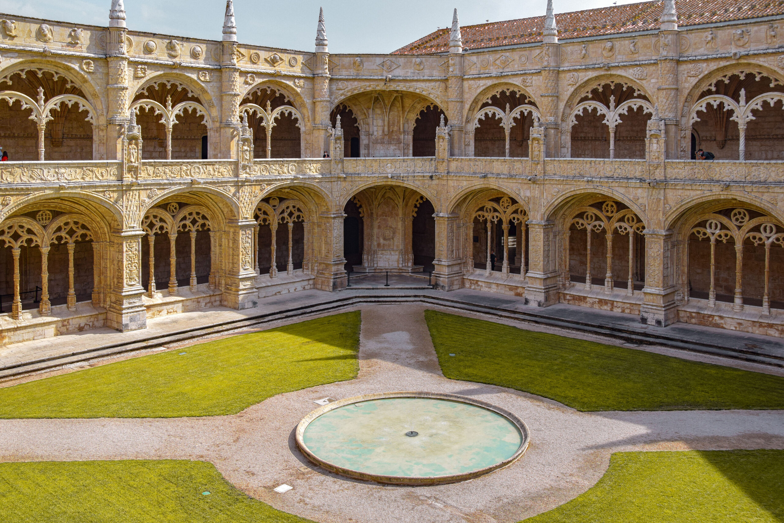 Je quitte maintenant les quais du Tage, pour me rendre au Monastère des Hiéronymites (“Mosteiro dos Jeronimos”) à quelques minutes de marche de là. Ce grand édifice est le symbole de la puissance et de l’apogée du Portugal au moment des grandes découvertes. Le roi Manuel Ier ordonna sa construction afin de célébrer la découverte des Indes par Vasco de Gama. Le Monastère est de style manuélin (comme la Tour de Belém), un style unique, initié par divers artistes de tout horizon dont le travail était financé par les richesses ramenées des expéditions à l’étranger. Le cloître du Monastère et ses arcades sont composées de multiples détails taillés dans la pierre (statues, gargouilles, vignes et feuillages, tourelles coniques…) : un vrai travail d’orfèvre. Ne manquez pas non plus l’église où repose Vasco de Gama.
