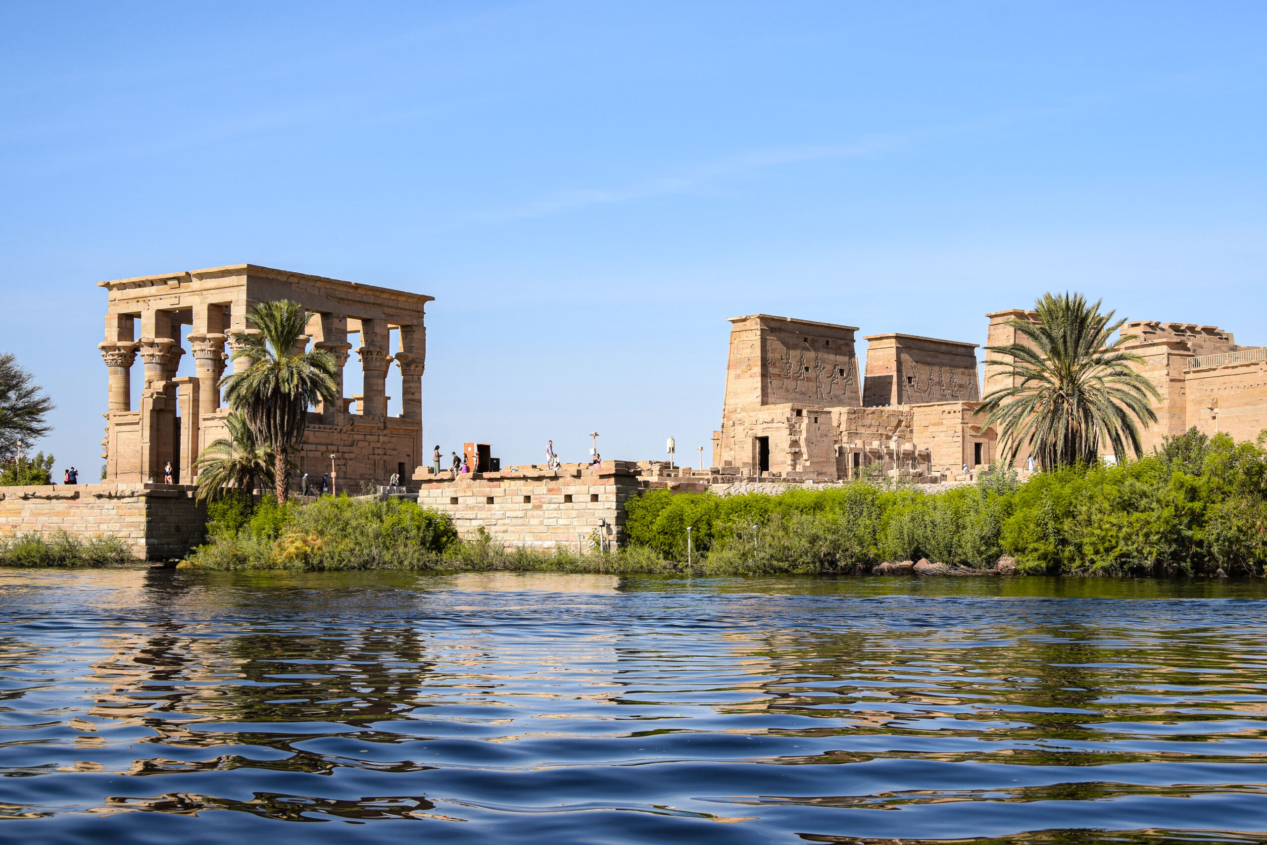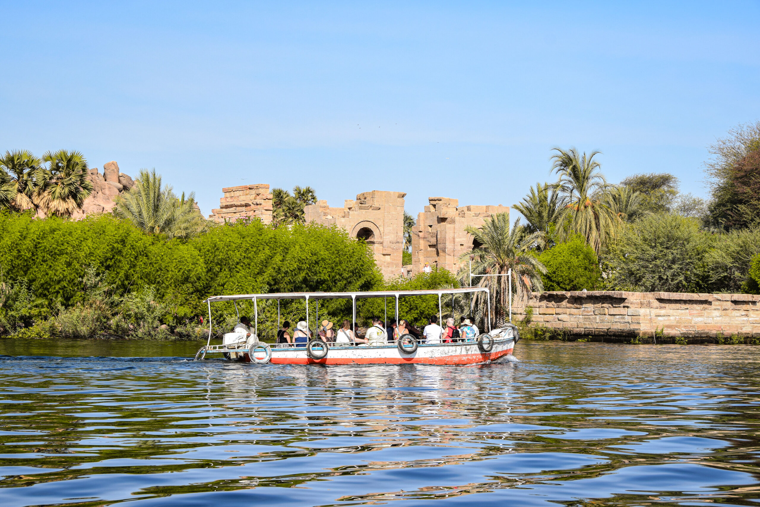 L’accès au temple est déjà une expérience en soi. Depuis l’embarcadère, on monte à bord de petites barques à moteur. Le trajet dure une dizaine de minutes, le temps de voir le temple surgir peu à peu entre les eaux calmes et les îlots de granit. Le matin tôt, l’ambiance est magique : la lumière est douce, les reflets du soleil dansent sur l’eau et l’on a presque l’impression de revivre les processions antiques qui menaient autrefois les fidèles à Isis.
