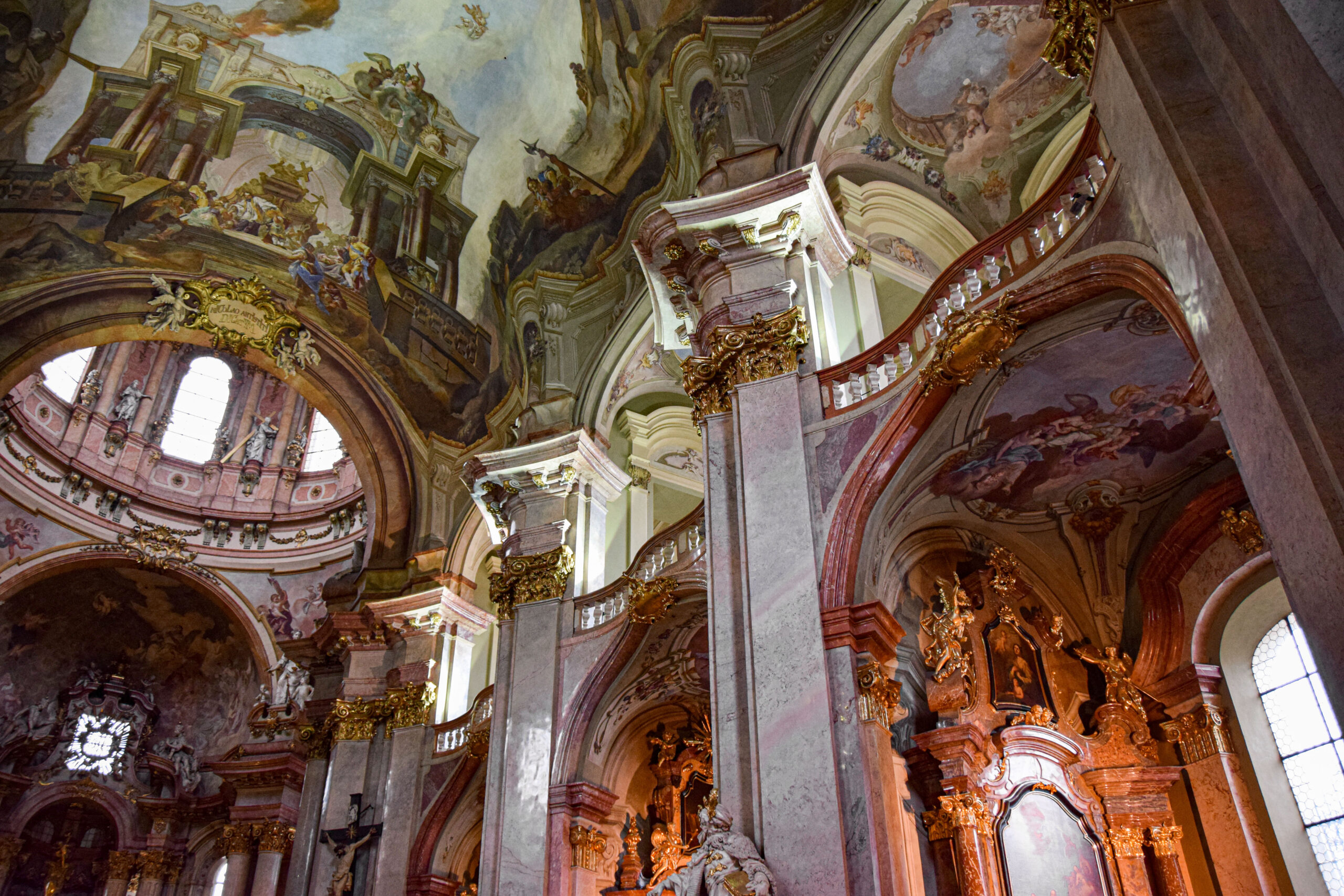- L’église Saint-Nicolas est reconnaissable à son dôme vert dont il est possible d’atteindre le sommet pour profiter d’une belle vue sur Prague. Cette église de style baroque possède un intérieur richement décoré entre sculptures ornées de dorure et fresques gigantesques au plafond.