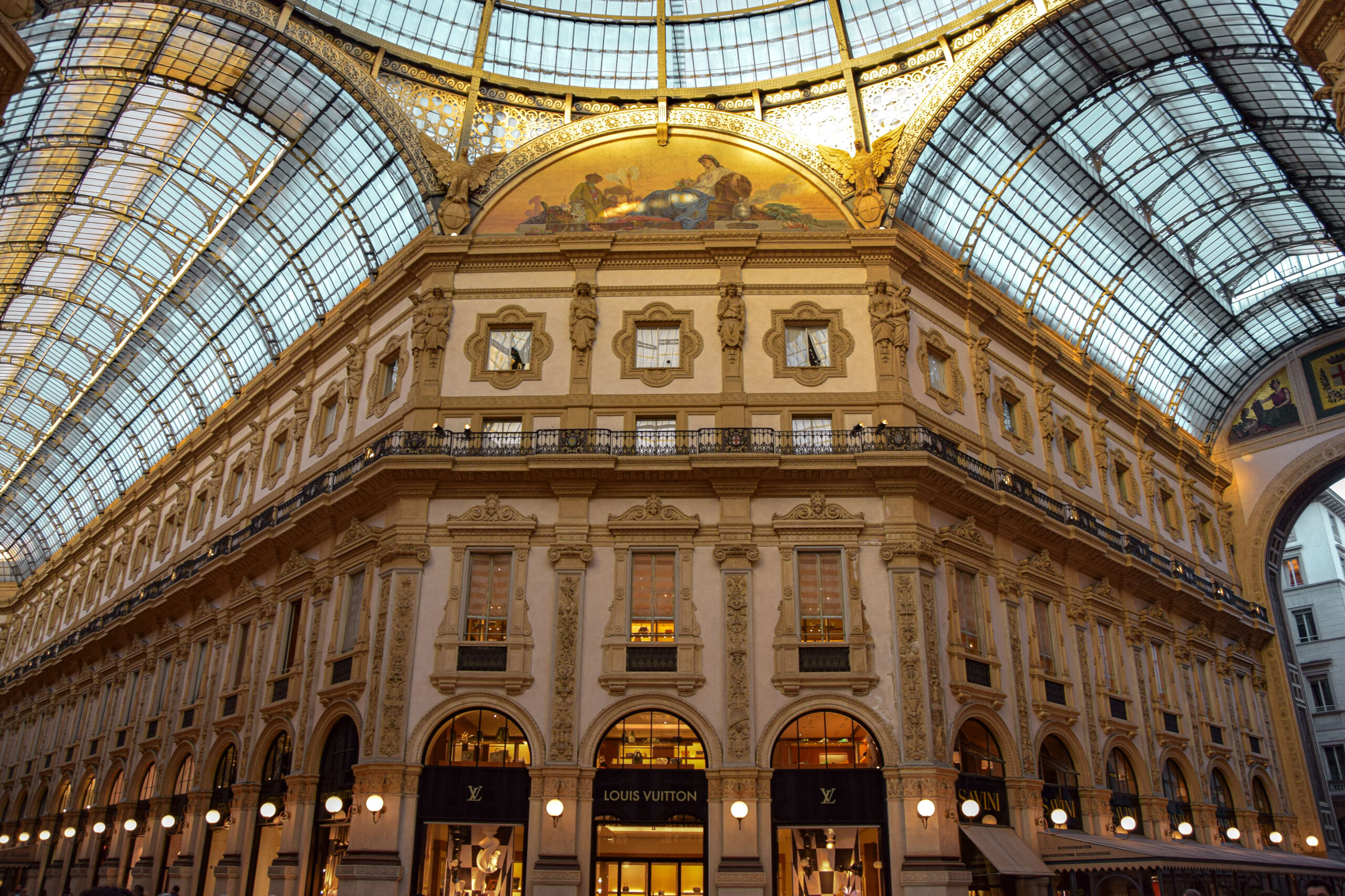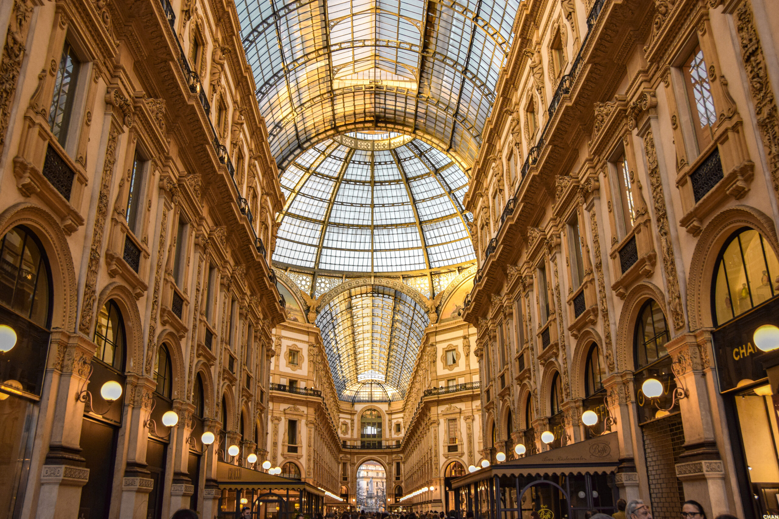 Sur la place du Duomo, il est impossible de passer à côté de la Galerie Vittorio Emanuele II et son architecture néoclassique. Sous son toit de verre se trouvent des boutiques de haute-couture, des cafés mythiques (Camparino) et des restaurants hauts de gamme.