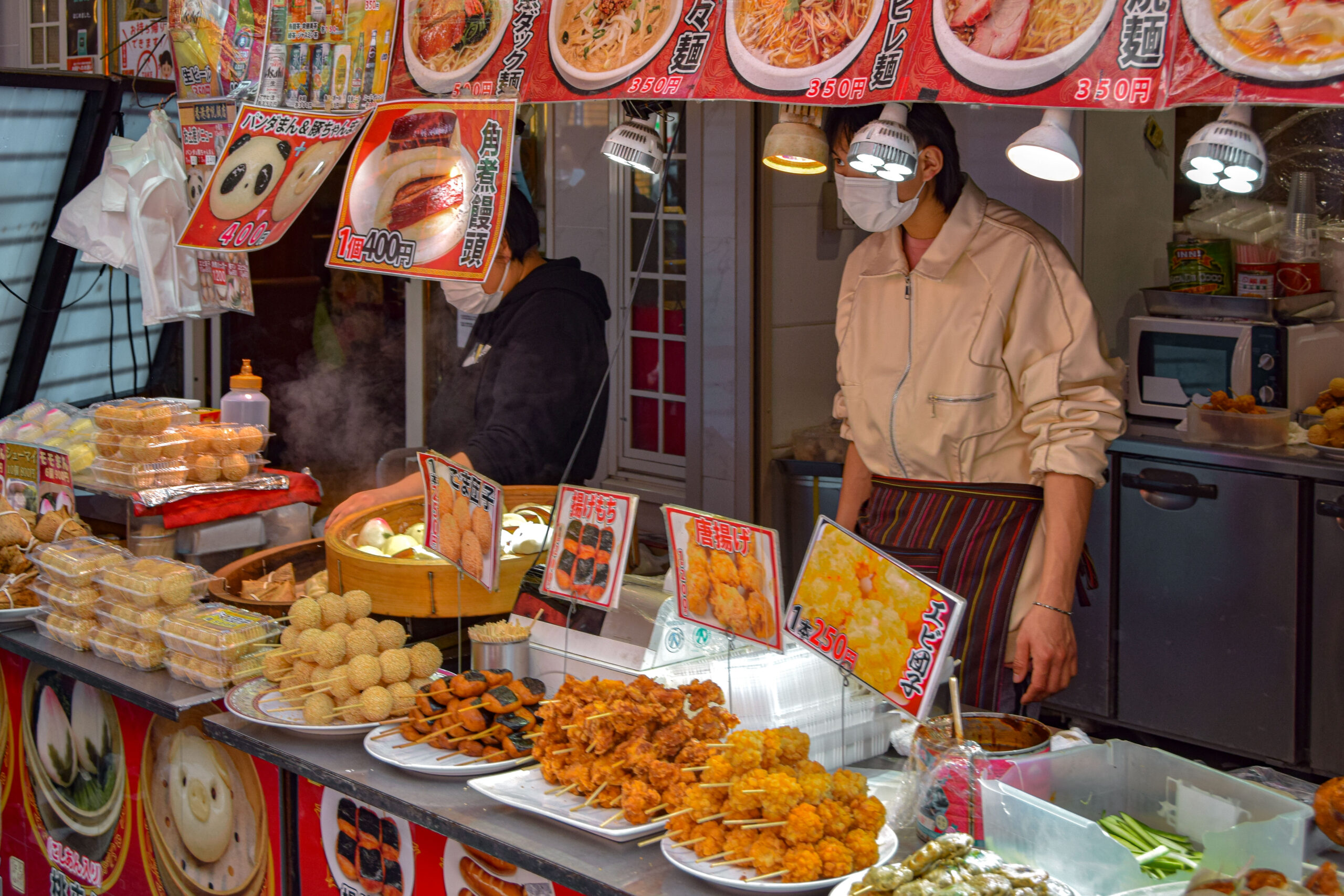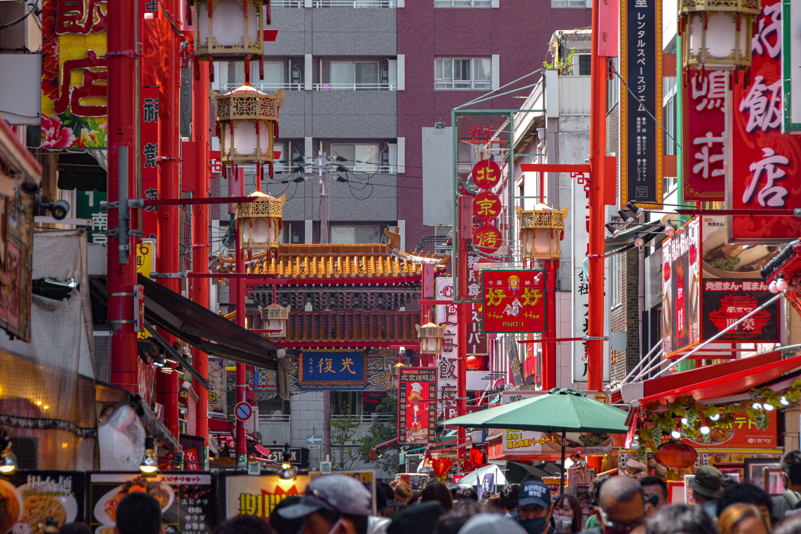 Quartier emblématique de Kobe, Chinatown est aussi le repère de la street-food chinoise. Nankinmachi, de son vrai nom, s’étend sur seulement deux longues rues mais abrite l’une des diasporas chinoises les plus importantes du Japon. Des dizaines de stands et échoppes proposent des spécialités typiquement chinoises, la plupart du temps cuisinées devant nos yeux.