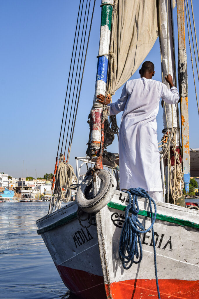 Pour approcher les îles, je vous conseille d’embarquer à bord d’une felouque, un voilier poussé par le vent et sans moteur pour une expérience emblématique d’Assouan. Ces voiliers authentiques sont héritiers d’un savoir-faire ancien. Assis à bord, on découvre un Nil vivant où le clapotis de l’eau, le grincement du bois, les bruits de la faune endémique se mêlent au calme de cette balade.