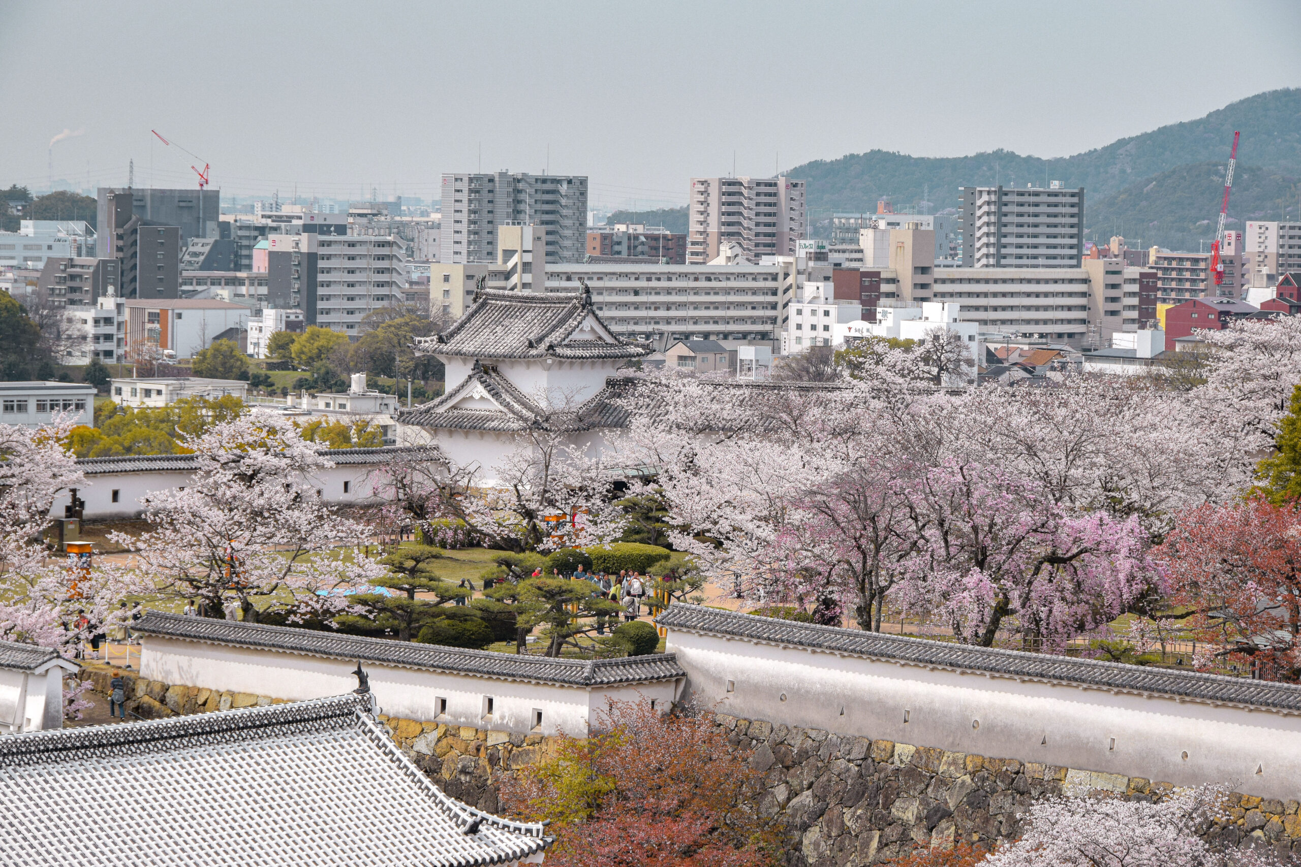 Le château de Himeji est certainement l’un des meilleurs endroits pour observer les cerisiers en fleur au Japon. La floraison s’étend généralement de fin mars à début avril. Le domaine du château compte près d’un millier de cerisiers qui fleurissent notamment le long des douves et dans le parc Sannomaru. Pendant cette période de floraison (qui ne dure qu’une dizaine de jours), des centaines de japonais se rendent au château de Himeji pour pique-niquer et se promener. Bien que magnifique et enchanteresse, la saison des sakura (cerisiers en fleurs) est également la plus fréquentée au château de Himeji.