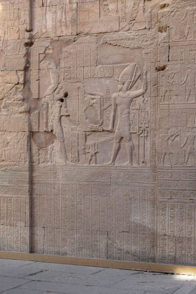 L’un des grands attraits de Kom Ombo réside dans ses bas-reliefs finement sculptés. Parmi les plus célèbres, on peut voir :