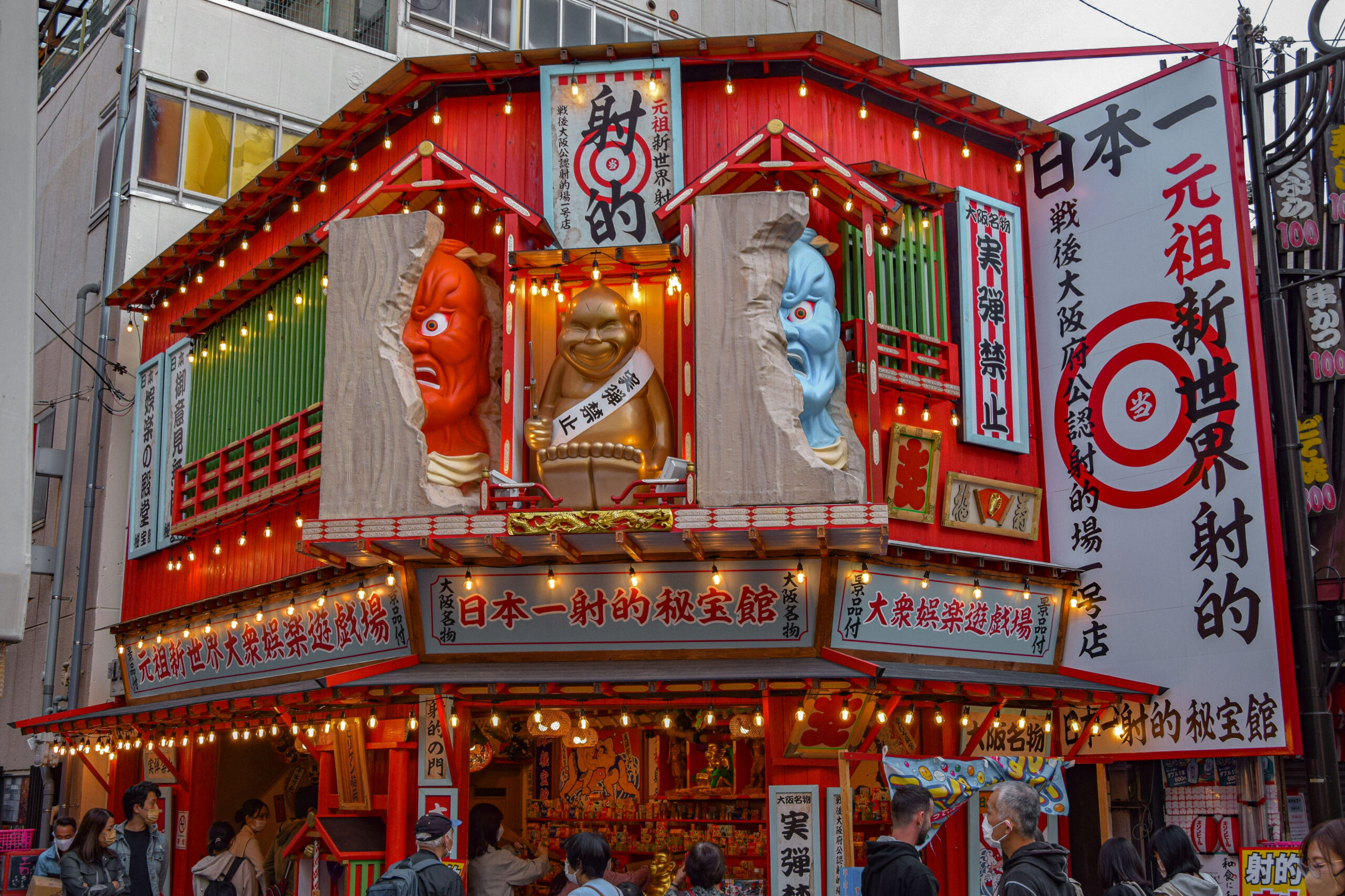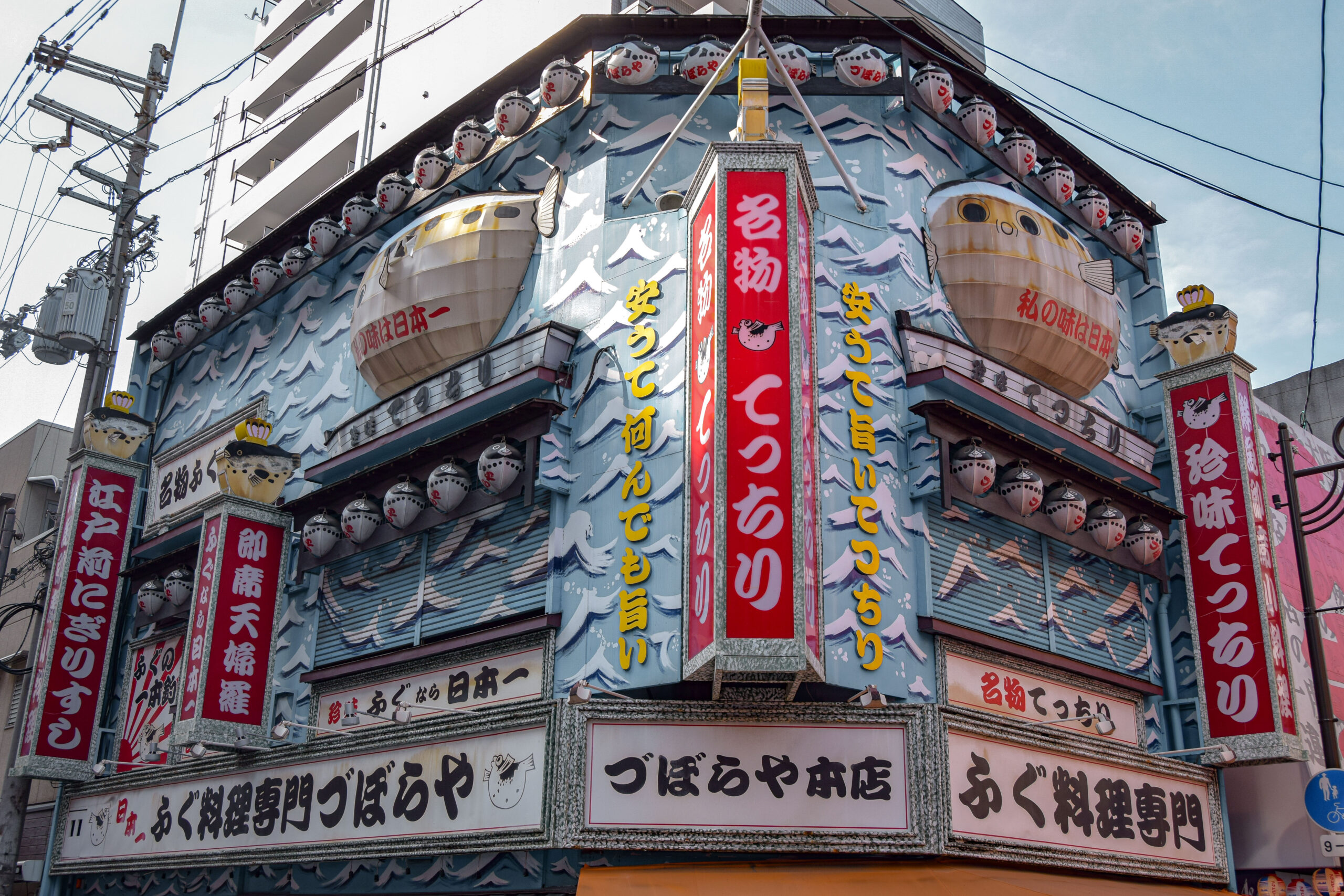 Situé en plein cœur de Osaka, Dotonbori est une rue piétonne longeant le canal principal de la ville. Dédié au divertissement et à la street-food, on y trouve de nombreux karaokés, des stands de nourriture, des magasins et des restaurants. Il n’y a rien à visiter de particulier, on apprécie surtout Dotonbori lors d’une flânerie le long des berges aux dernières heures de la journée avant que les néons ne s’illuminent à la nuit tombée.