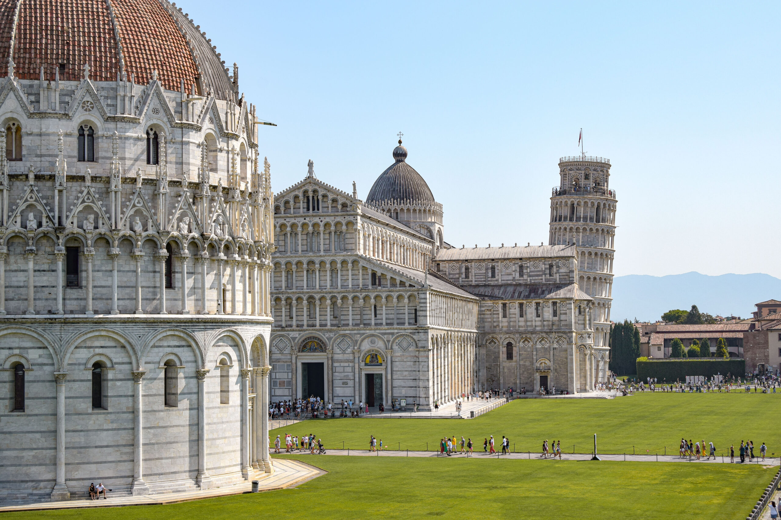 La place des Miracles : tour de Pise, cathédrale, baptistère et remparts